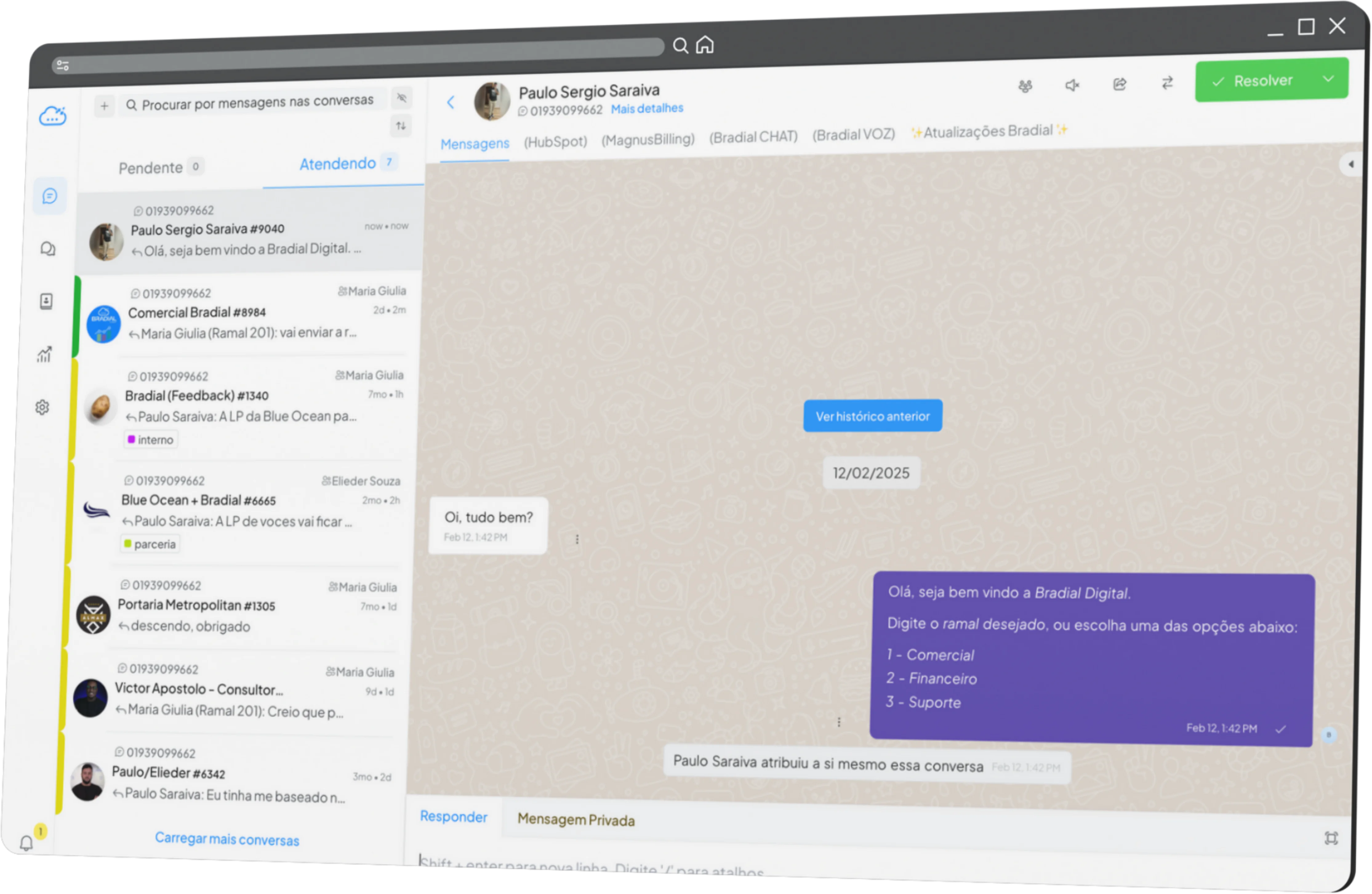 Conecte o Bradial Chat ao seu sistema de CRM ou ERP. Automatize processos e torne seu atendimento ainda mais poderoso e inteligente.